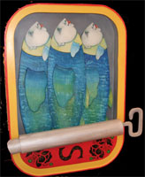| Seront présentés des artistes dont la pratique s’inscrit de plain pied dans l’art de la récupération : Daï : cet artiste niçois adepte de la figuration libre fait feu de tout bois surtout quand il est de récupération ou échoué sur les plages ou places de marché. Ses personnages favoris aux faciès de pierrot lunaire s'inscrivent dans des écrins de hasard : boites de sardines, cagettes, palettes et contemplent notre monde avec un humour désenchanté. |